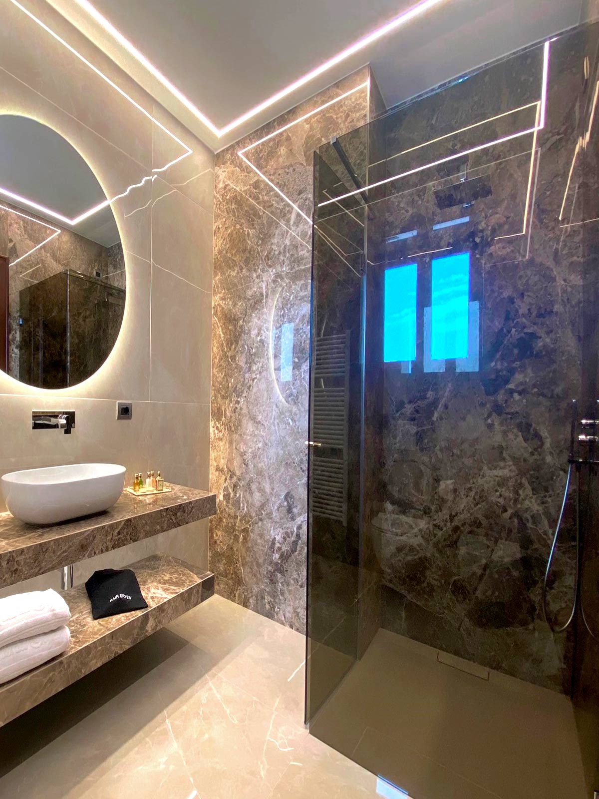 Original wooden floor. Marble bathroom with large shower cubicle.