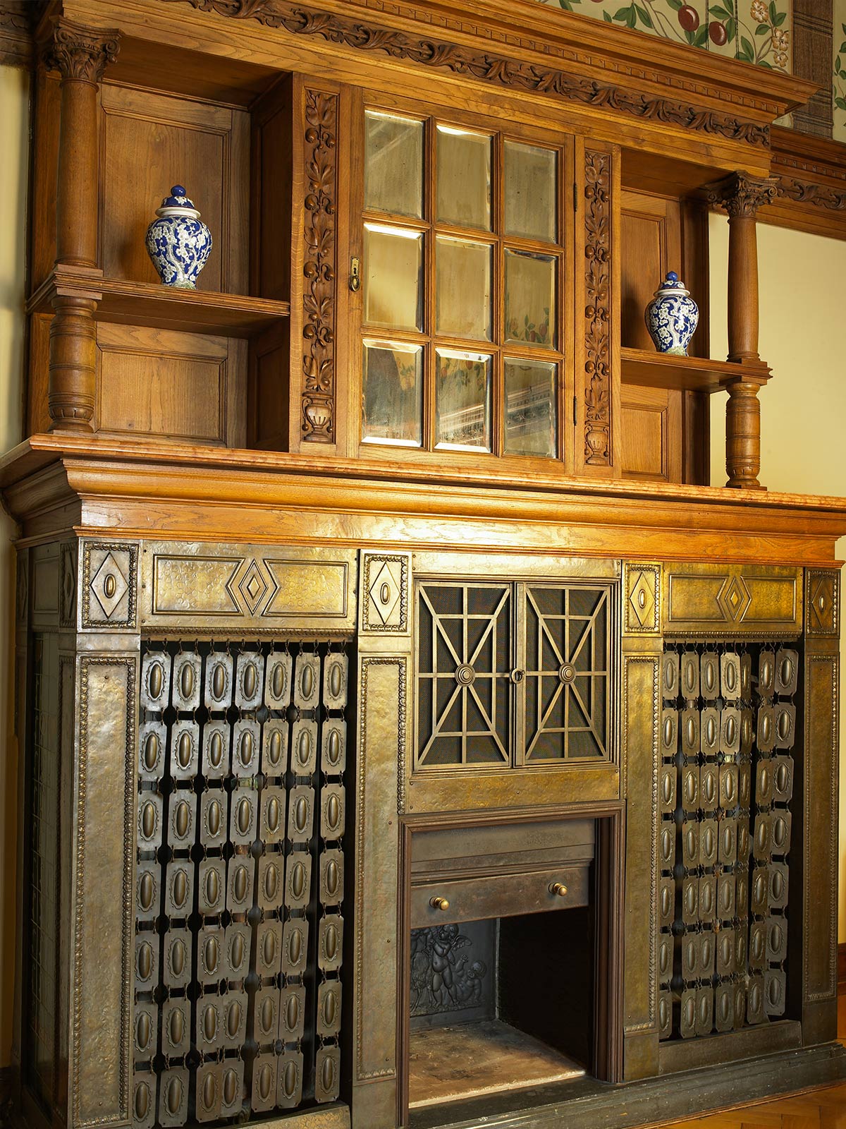 It was originally used as a billiard room. It has a large window that delimits the living room from the bedroom and a large stylish fireplace.
