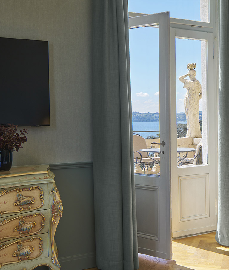1 romantische Suite im venezianischen Stil, ausgestattet mit Tapeten und antiken Holzböden.